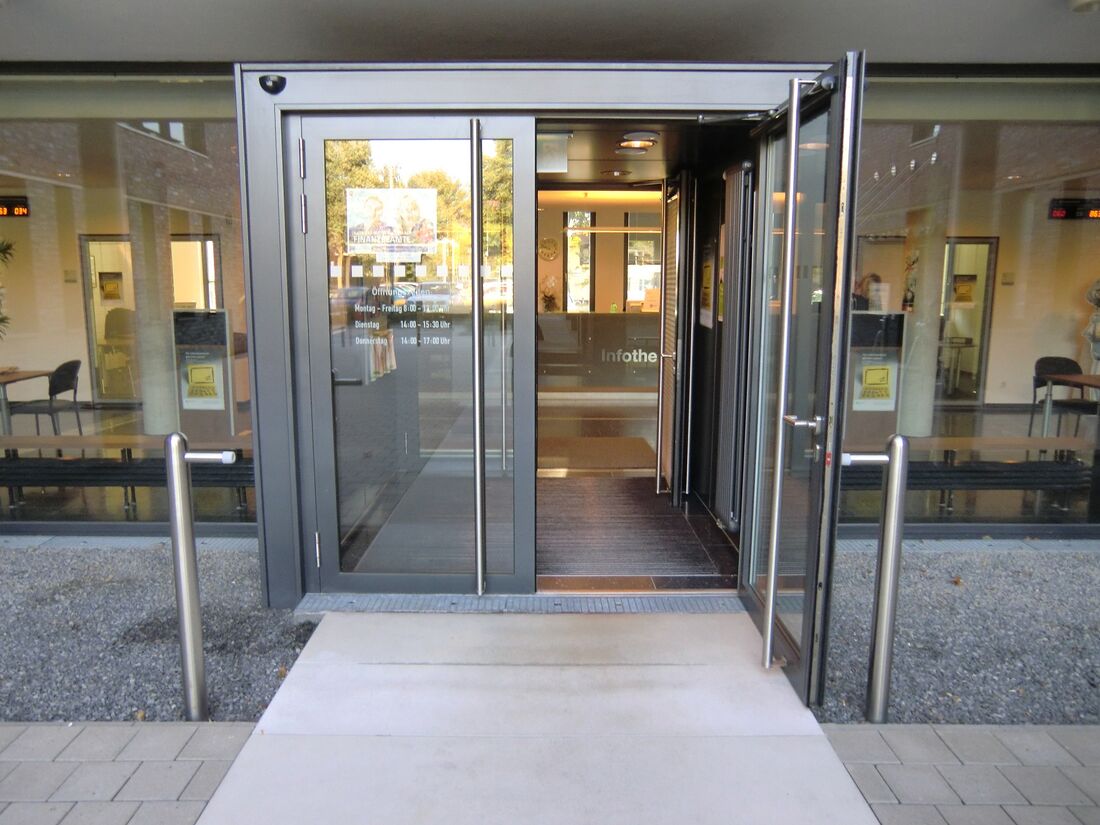 – Windfang mit Aluminium-Drehtüren und Drehtürantriebe